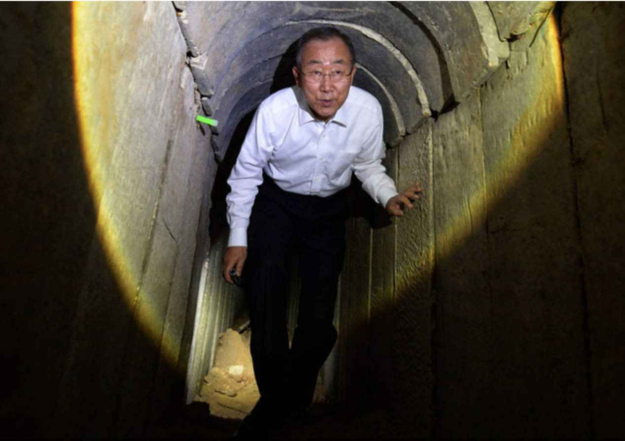 תמונת היום: מזכ”ל האו”ם במנהרה ששימשה לחדירת לוחמי חמאס לישראל סמוך לעין השלושה (צילום: דובר צה”ל)
