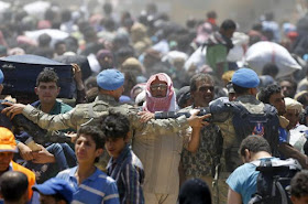 תמונת היום: שוטרים צבאיים טורקים בגבול עם סוריה מנסה לשלוט בתנועת פליטים מסוריה אתמול (צילום: רויטרס)