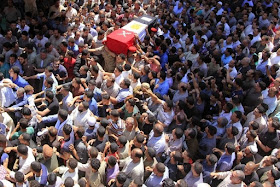 תמונת היום: לווית אחד מאנשי הצבא המצרים שנהרגו במתקפת דאע”ש בסיני שלשום (צילום: AFP)