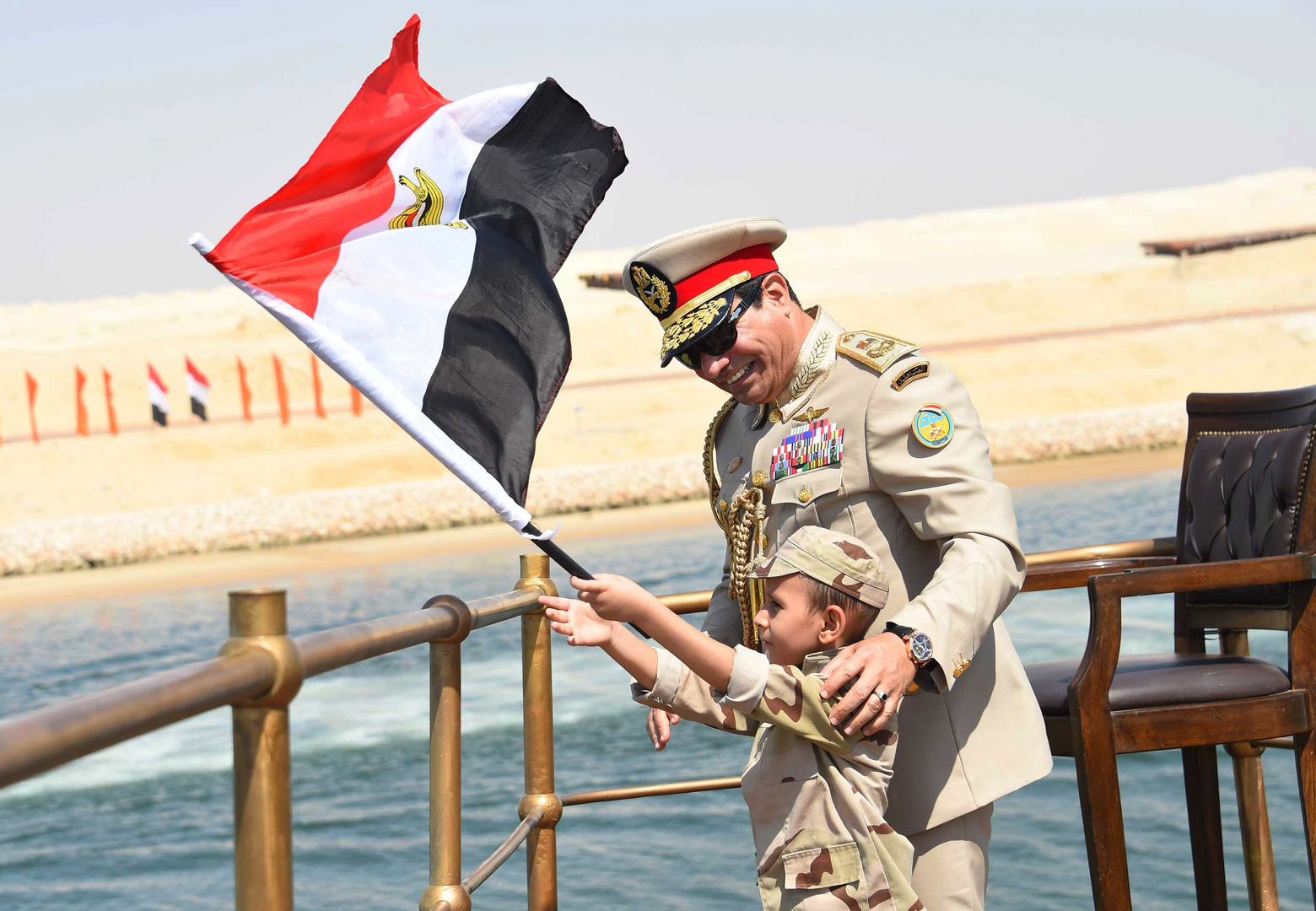 תמונת היום: נשיא מצרים, סיסי, בחנוכת תעלת סואץ החדשה אתמול (צילום: הנשיאות המצרית)