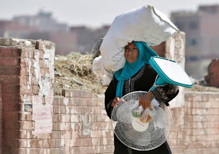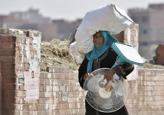 תמונת היום: אישה מצרית נושאת מאוורר ברחובות קהיר הלוהטים בשבוע שעבר (צילום: AP)