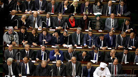 - לראשונה זה שלוש וחצי שנים התכנס אתמול הפרלמנט המצרי לאחר שקודמו שנשלט על ידי האחים המוסלמים פוזר בצו בית משפט בשנת 2012. כעת יצטרך הפרלמנט לאשר את הצווים שהוציאו נשיאי המדינה מאז ההפיכה הצבאית ביולי 2013. מהומה פרצה בישיבת הפתיחה כשאחד מחברי הפרלמנט סירב להשבע לקיים את החוקה במלואה משום שההקדמה שלה כוללת תמיכה במהפיכה של שנת 2011 שהפילה את משטר מבארכ. בנוסף, נבחר כיושב ראש לפרלמנט, פרופסור למשפטים החבר בקואליציה הפרו משטרית שזכתה בבחירות.