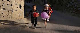 תמונת היום: ילדים סורים בפרבר הרוס של דמשק חוגגים את עיד אלפטר השבוע (צילום: AFP)