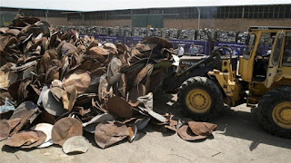 תמונת היום: השמדת צלחות לווין המשמשות לקליטת שידורים זרים באיראן (צילום: AFP)