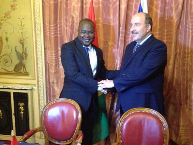 תמונת היום: נשיא גיניאה ומזכ”ל משרד החוץ, דורי גולד, במעמד חידוש היחסים בפריז אתמול (צילום: משרד החוץ)